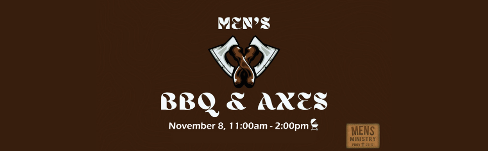 Men, it is time for BBQ and AXES. November 8 from 11:00am-2:00pm – We’re talking tri tip, brisket, and bacon with all the sides. We’ve got the meat! We’ve got the AXES and plenty of targets for all skill levels. What a great time for food, hanging out together, a word of encouragement and of course some friendly competition.